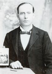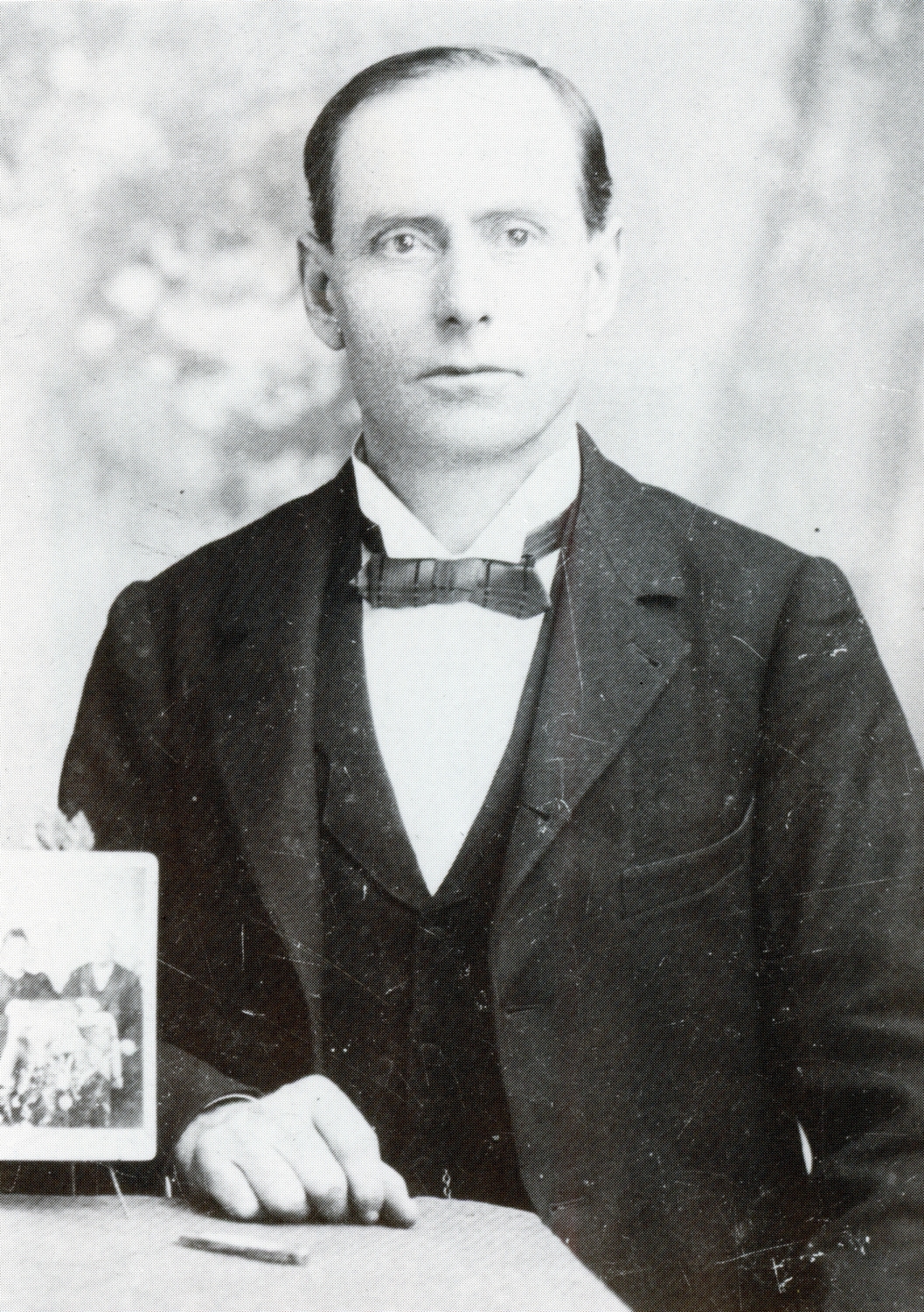 Klaas Peters posing sitting at a table. Taken from the Mennonite Heritage Centre Photograph Collection at the Mennonite Heritage Archives. Reference code: CA MHC 436-3.0. Used with permission.